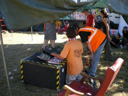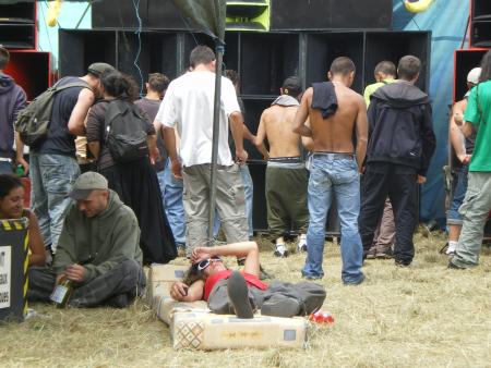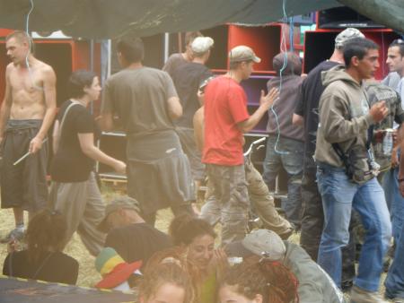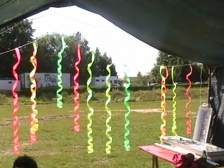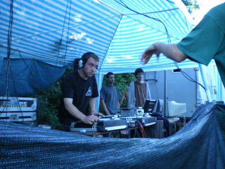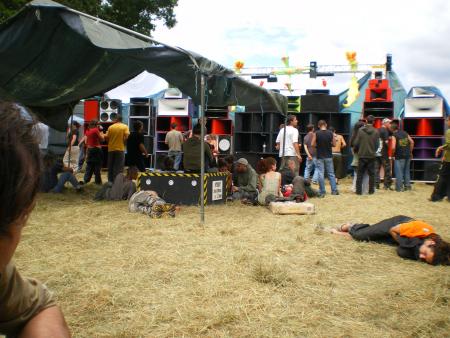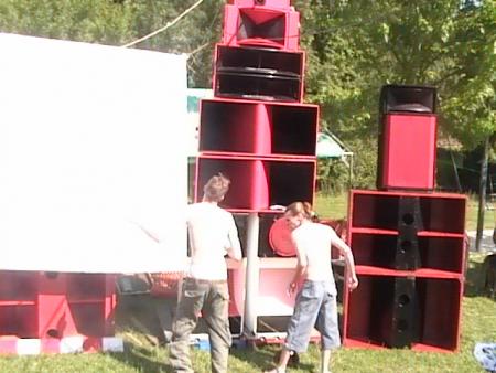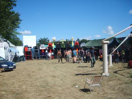 Arrivée sur les lieux le vendredi avec toute la compagnie histoire de prendre l'apéro tous ensemble et dormir sur place pour commencer tot a installer donc on se met de bon coeur a tout ca ,tellement qu 'il y en a qui ne dormiront même pas ( n'est ce pas piwett!!!!) donc le reveille dans la chaleur effectué ,l'installation du son commence puisque le son devait debuter a 14h . Chose exceptionnelle le son sera allumé non seulement a l'heure mais même 1/4 d'heure en avance!!!! Du coup Yarkouy prend les chose en main et nous envoie un petit live dub enchaîné tek drum de derriere les fagots enchainé par erwan pour un mix trance de ouf ce qui va motivé tout le monde!!! Surtout Niko et Méphystek qui decide d'enchainé hardtek pour bien motivé le vin d'honneur du mariage qui se deroulé dans la salle juste a coté de nous!!!! (Pas de chance pour eux!!!) Charlot continue puis c'est au tour de dopi de reprendre avec un mix trance de l'apocalipse puis Mathias au live tek hardtek !!! Pas grand monde l'apres midi avec la chaleur qu il fesait ca se comprend maisca sera rattrappé pendant la nuit!!!!