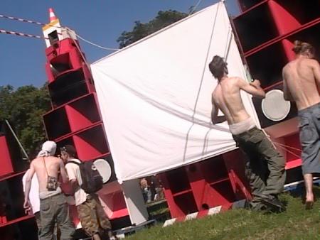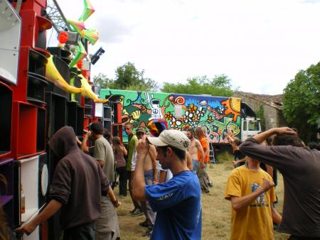 les Lezarts libres arrivent en debut d aprem et installe leur sonn puis les viniteks et enfin charlatan et stew de la BTP qui conclut le mur qui commencera a peter vers 20 h
