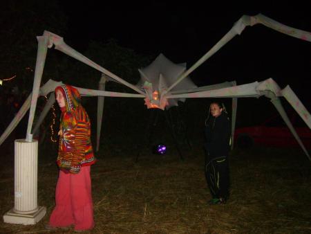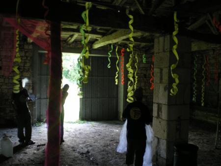 Les hostilités commencent avec l'instalation de la déco (Magnifique araignée de 5 ou 6m d'eenvergure! par R1) jusqu'au moment ou on decouvre sous les branchage la maison contre le champs!!! 1 petit coup de fil passer au proprio et c'est bon on peut faire le bar dedans ( visible sur la video)