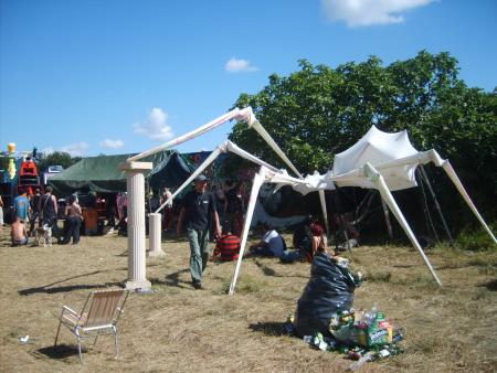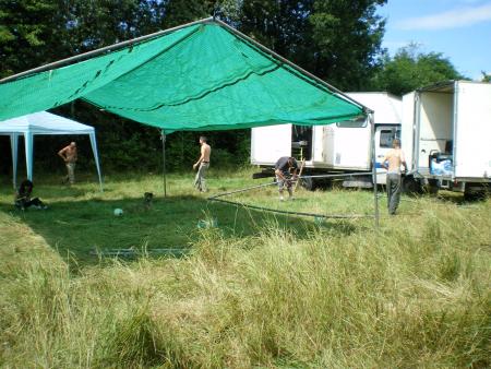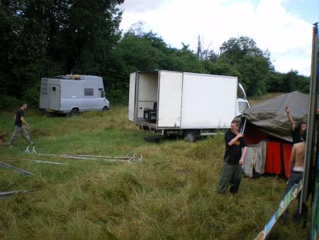 Pour commencer, on est arriver sur les lieux le samedi matin vers 2h du mat, en convoi et de nuit, pour etre plus discret, avec l'armada de camtar derriere .Donc on boit 2 ou 3 bieres arrivées sur les lieux avec les Ecliptik histoire de deconnées 5 minutes et d'aller se couché!
