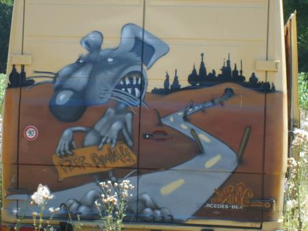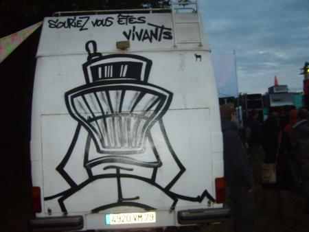 Par contre on pousse un enorme coup de gueule contre les enculés qui nous ont chourrer toutes nos tentures(offerte 8h plus tot!!!) a la caisse fracturer et vidée de tout ces papiers et autoradio, au 135 l de gazoil volé chez le paysans d 'a coté ( que on va surement devoi rembourser de notre poches) et aux PC volé avec 4 ans de boulot enregistrer dessus !!!!!!